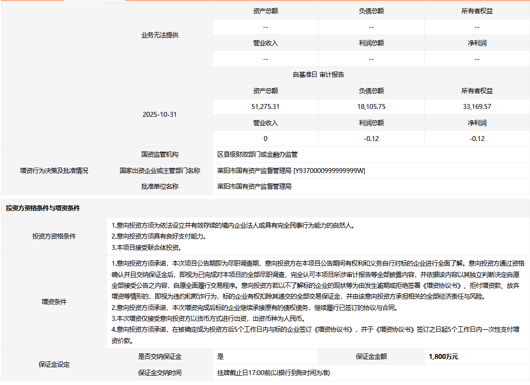 轉讓方:萊陽市南泗莊水庫投資開發(fā)有限公司