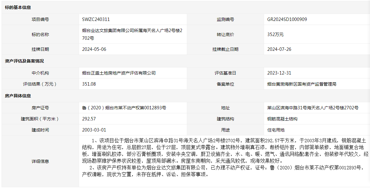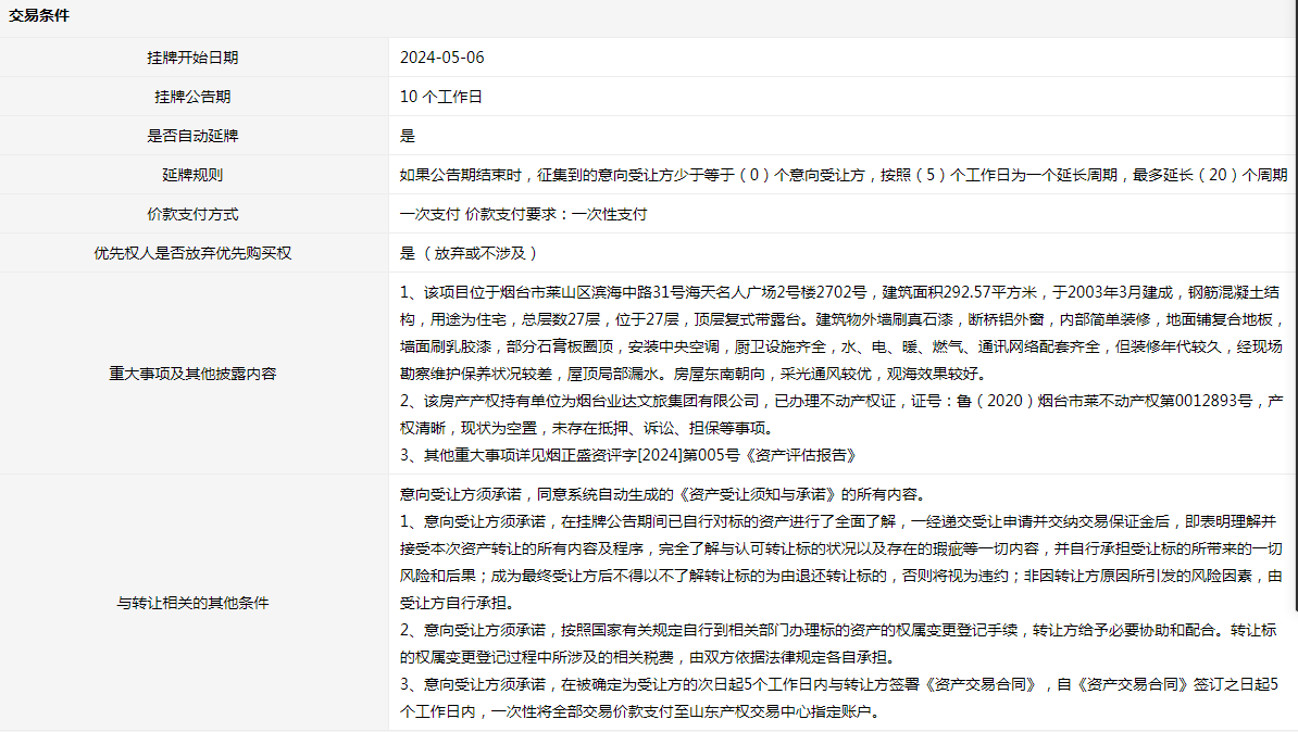 轉(zhuǎn)讓方:煙臺業(yè)達(dá)文旅集團(tuán)有限公司